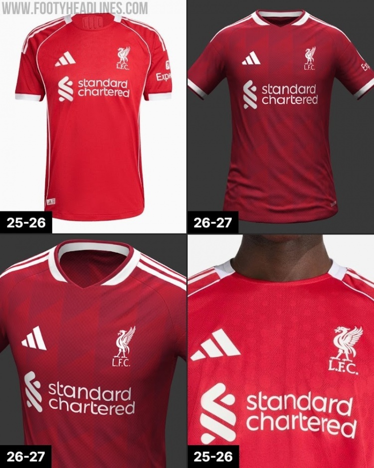 根据利物浦球衣专家“FumlerRawk”的消息,设计师HariboHeron已制作了利物浦26-27主场球衣的早期效果图。利物浦主场球衣将采用比本赛季更深的色调,搭配阿迪达斯全新模板以及特殊图案。